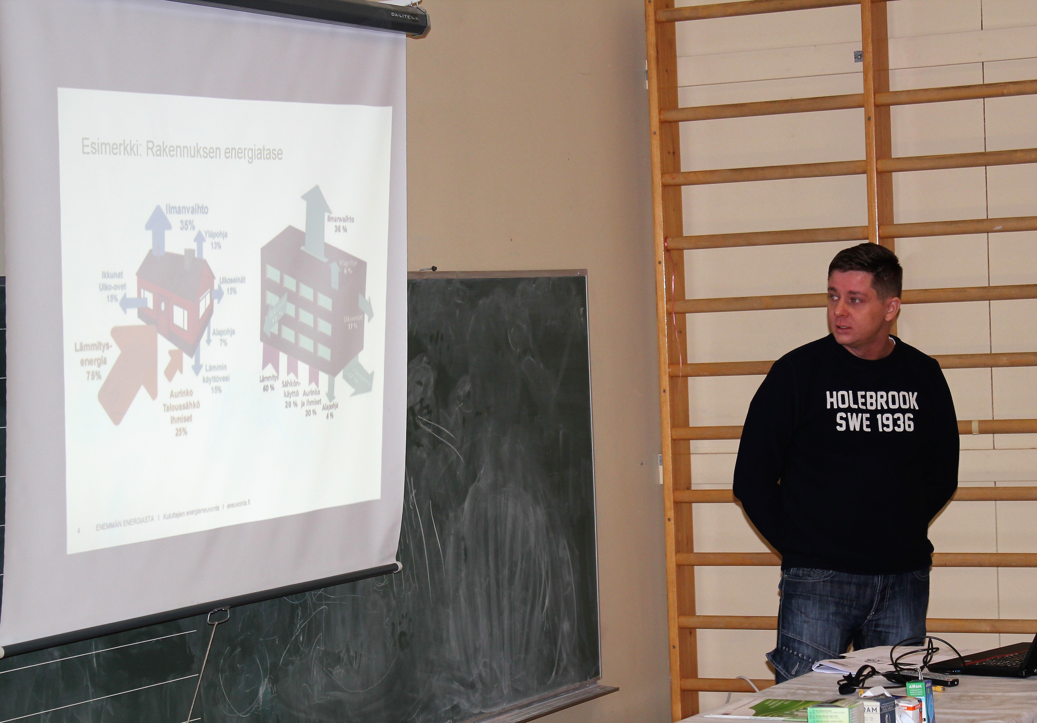 Äskettäin vietettiin energiailtaa Toimintakeskus Einolassa. Kymenlaakson energianeuvoja Tommi Tuomi kertoi kotitalouden energiansäästövinkkejä ammattilaisen näkökulmasta sekä esitteli erilaisia vaihtoehtoja kodin energiatuotantoon. Illan kuulijat olivat kiinnostuneita mm. aurinkoenergiasta sekä maalämmöstä. Vanhan lämmitysjärjestelmän vaihtaminen nykyaikaiseen järjestelmään herätti myöskin keskustelua. Tuomi totesikin, että toimivaa järjestelmää ei kannata lähteä vaihtamaan vaan miettiä uutta järjestelmää vasta vanhan hajotessa.
