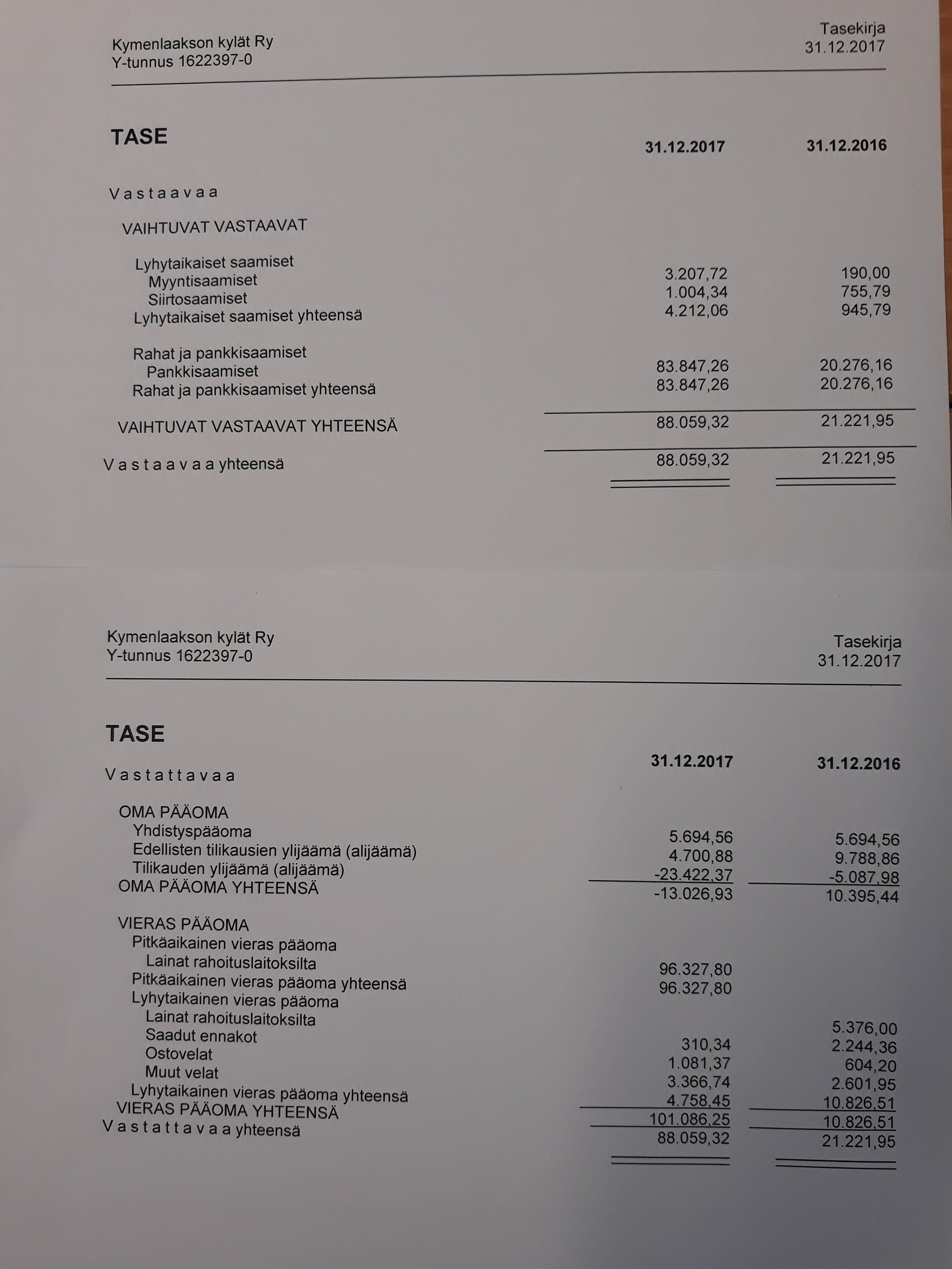 - Esitetään tilinpäätös, vuosikertomus ja tilintarkastajien lausunto