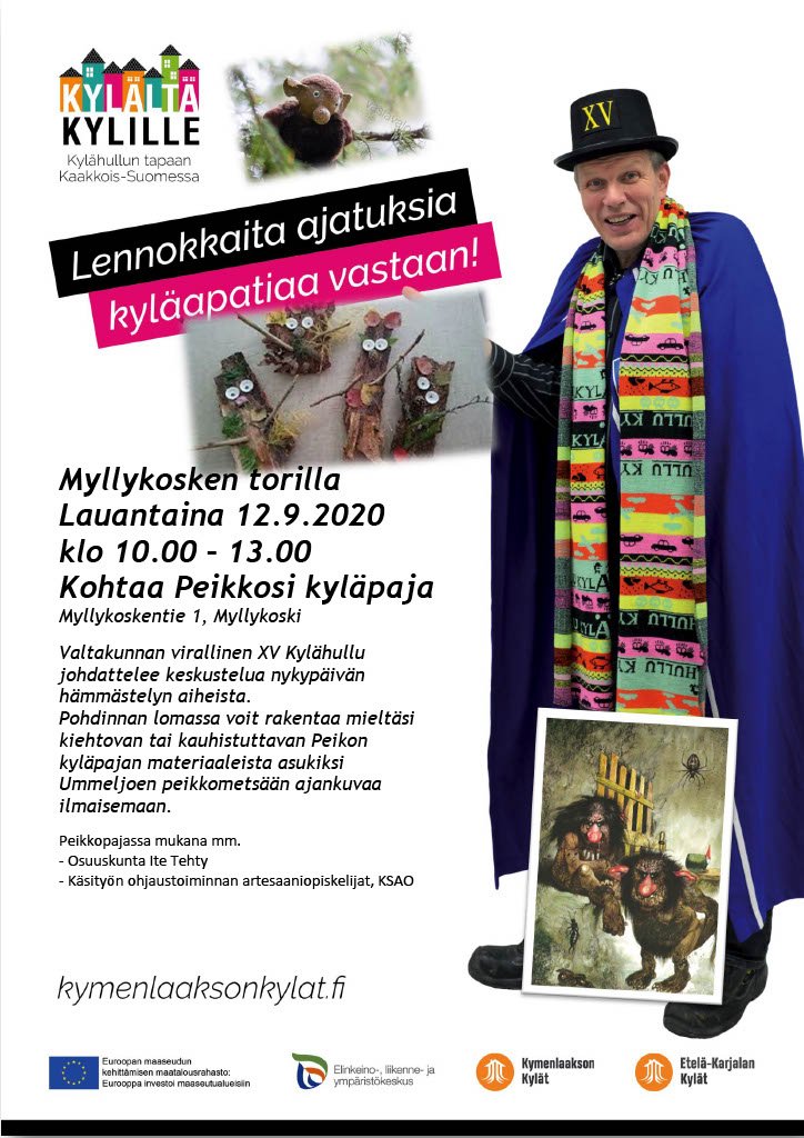 Kohtaa Peikkosi kyläpaja Myllykosken torilla la. 12.9 klo 10-13 Kirjoitettu 31.8.2020, kirjoittajana Leena Borg