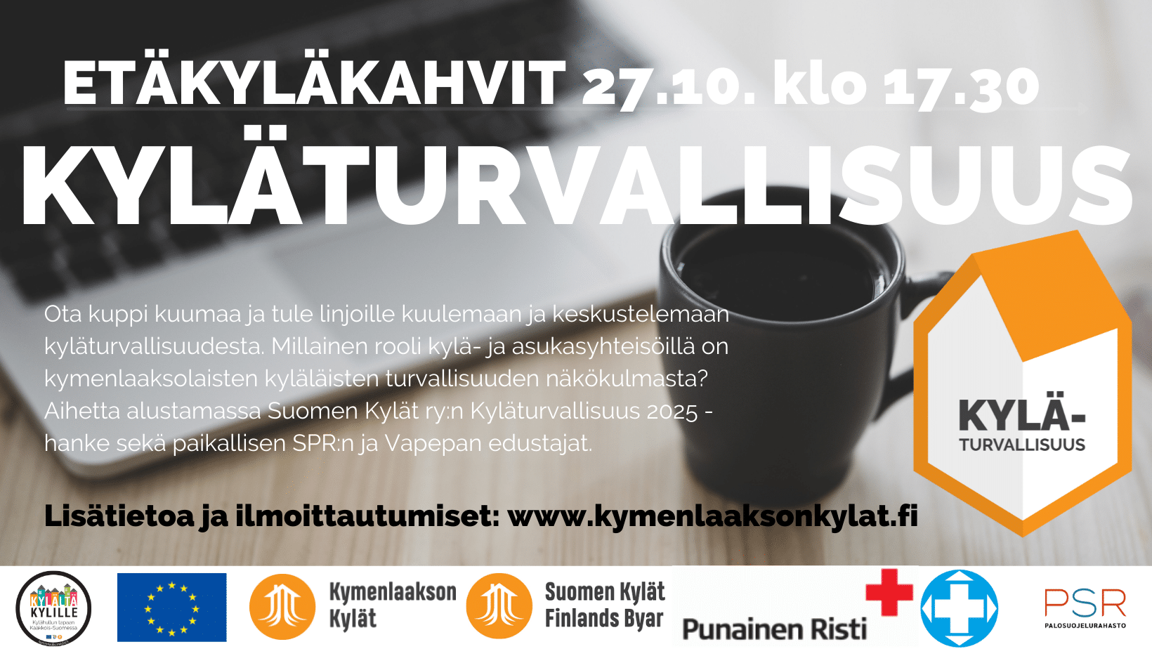 Ota kuppi kuumaa ja tule linjoille kuulemaan ja keskustelemaan kyläturvallisuudesta. Millainen rooli kylä- ja asukasyhteisöillä voisi olla oman alueen turvallisuuden lisäämisessä? Aihetta alustamassa Suomen Kylät ry:n Kyläturvallisuus 2025 -hanke sekä paikallisen SPR:n ja Vapepan edustajat.