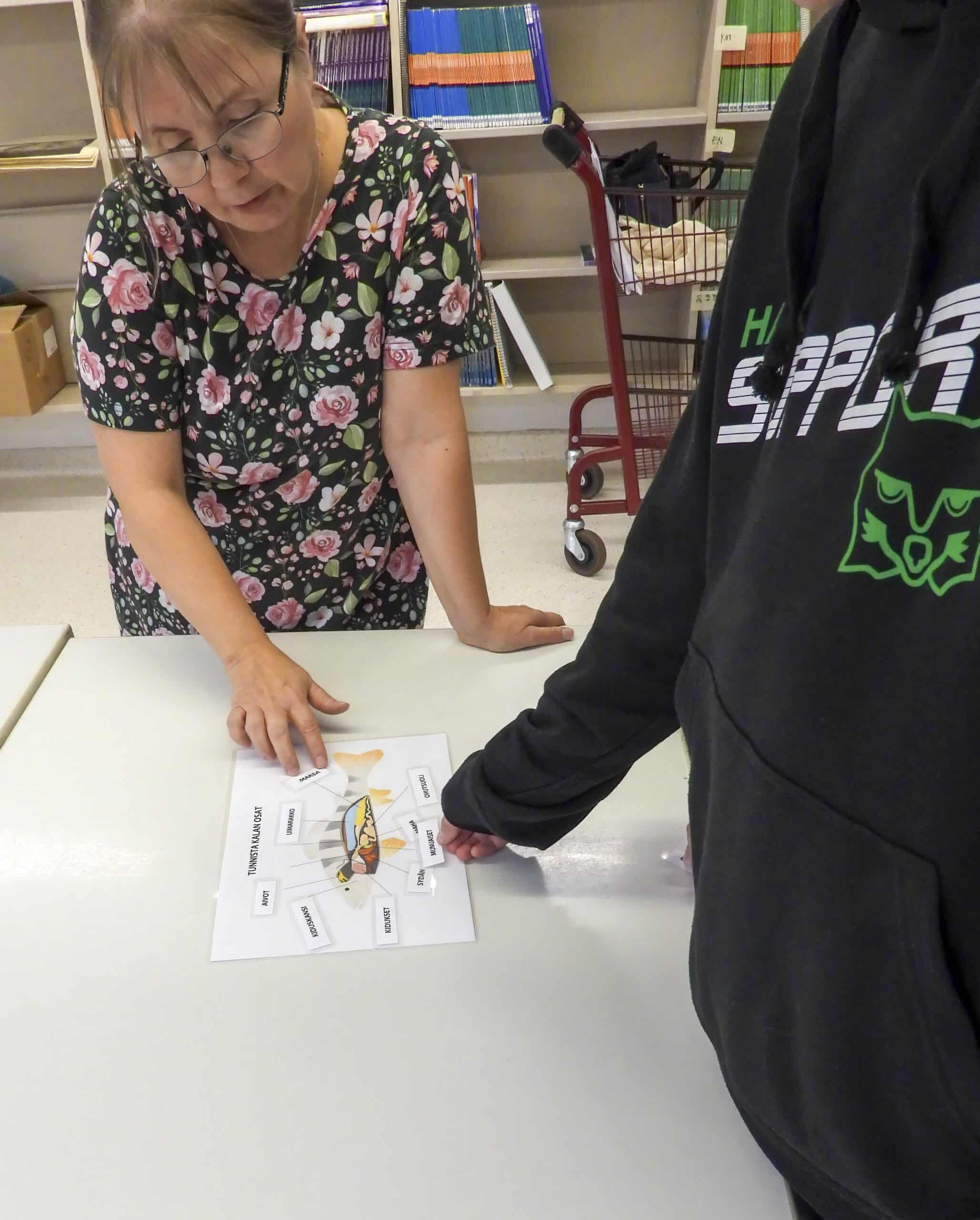 Lapset pääsivät tekemään erilaisia kala-aiheisia tehtäviä. Porukalla tuumailtiin kalan osia ja tunnistettiin suomalaisia kalalajeja.
